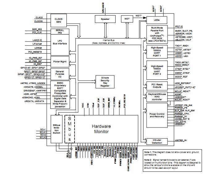 The SCH5017-NW is a 3.3V compliant super I/O controller with an LPC interface. It also includes hardware monitoring capabilities, enhanced security features, power control logic and motherboard glue logic.