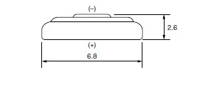 SR721SW features: (1)Model SR626W; (2)System Zinc-Silver oxide/Alkaline Electrolyte; (3)Nominal Voltage: 1.55V; (4)Nominal Capacity: 28mAh; (5)Nominal Discharge Current (eA)50; (6)Temperature Ranges (deg. C)min. max. Operating: –10 +60℃; (7)Weight (g)0.4; (8)Dimensions (mm); (9)Diameter 6.8; (10)Height 2.6.